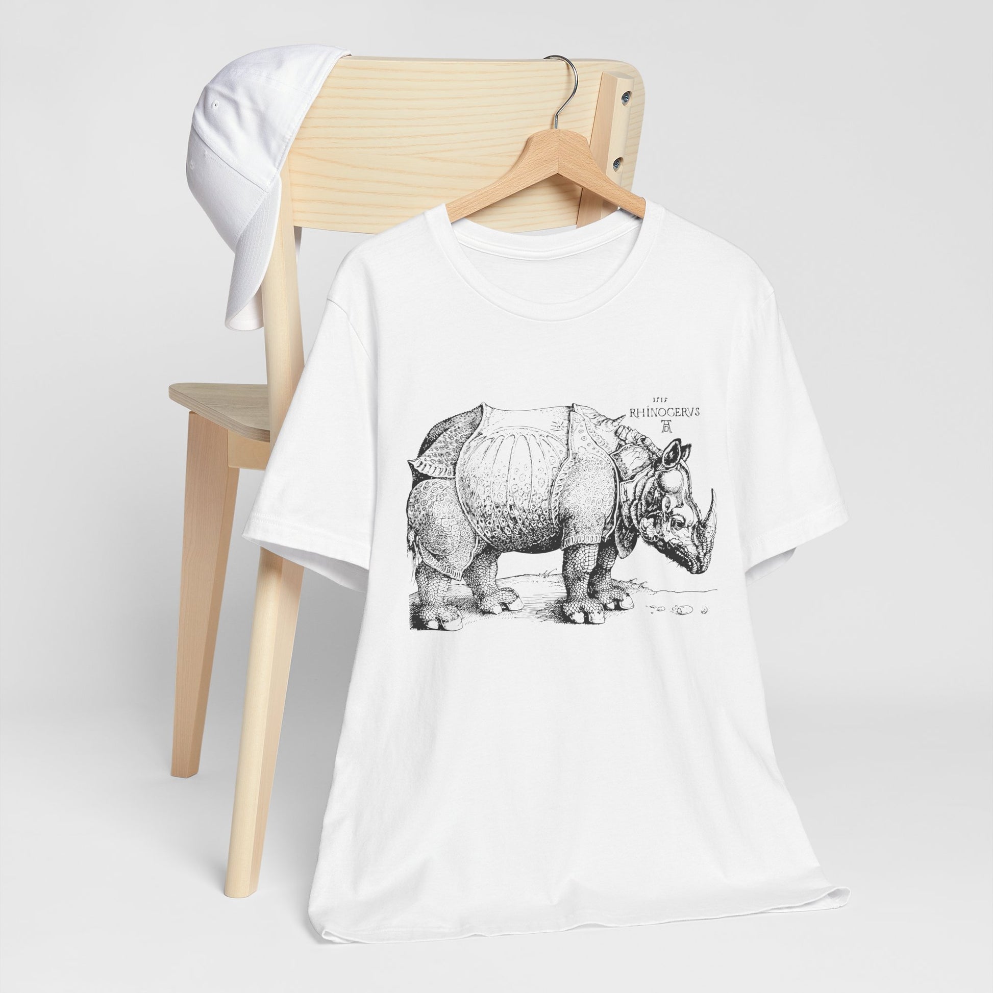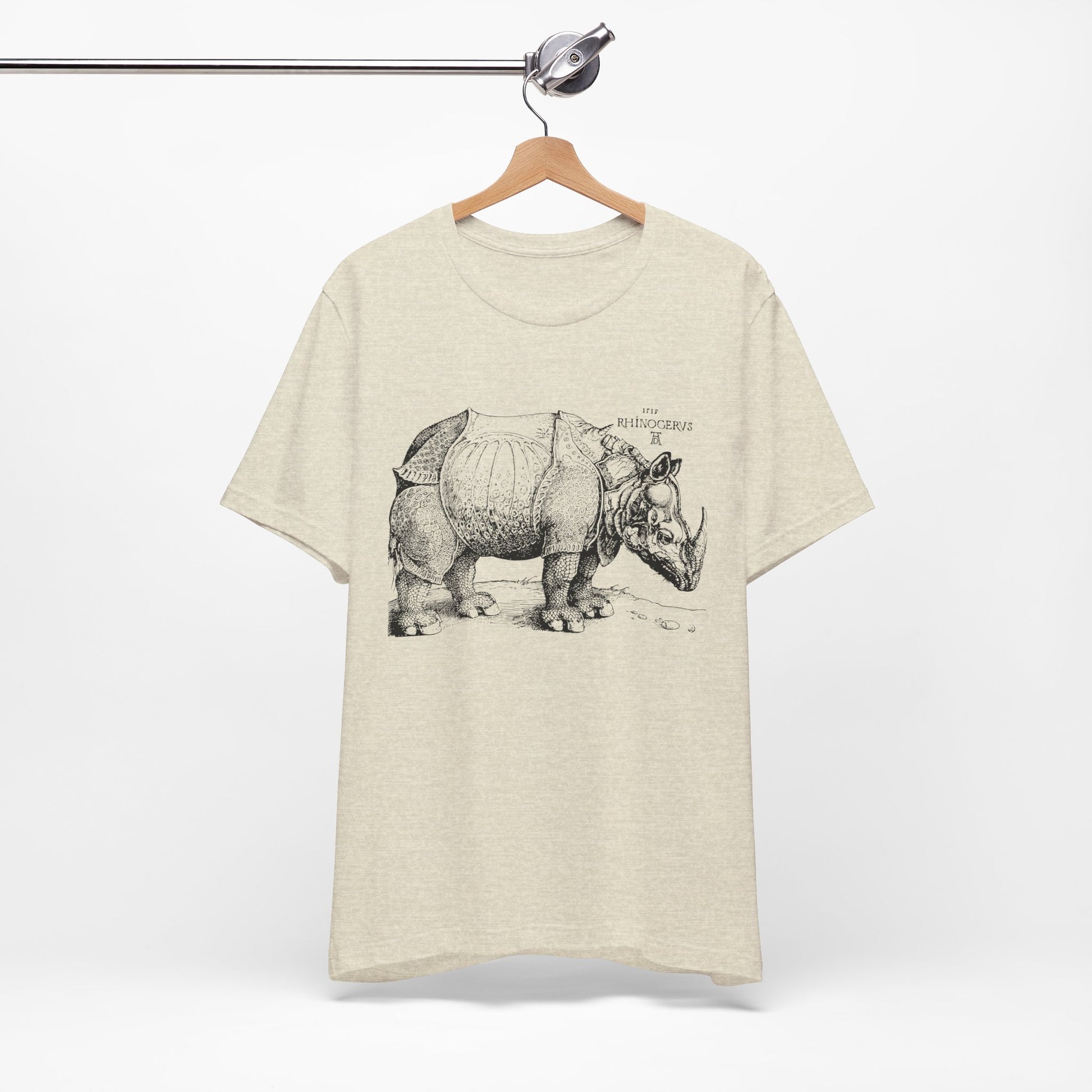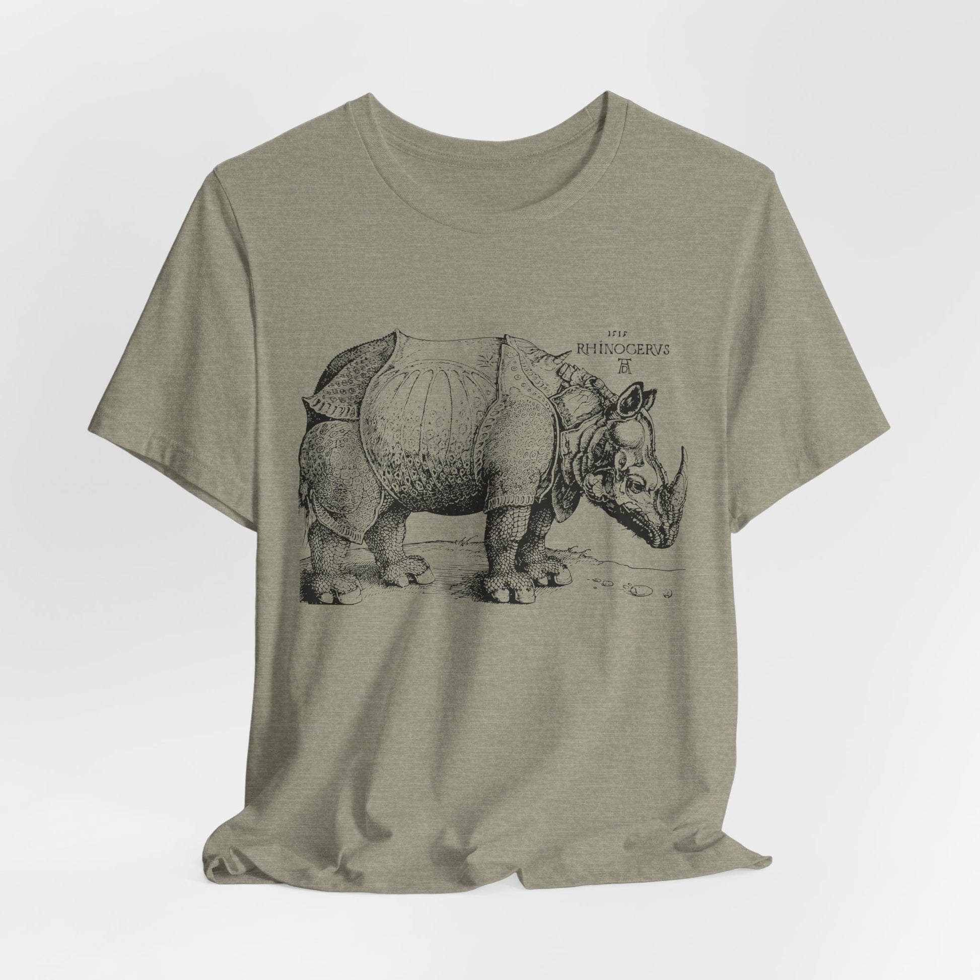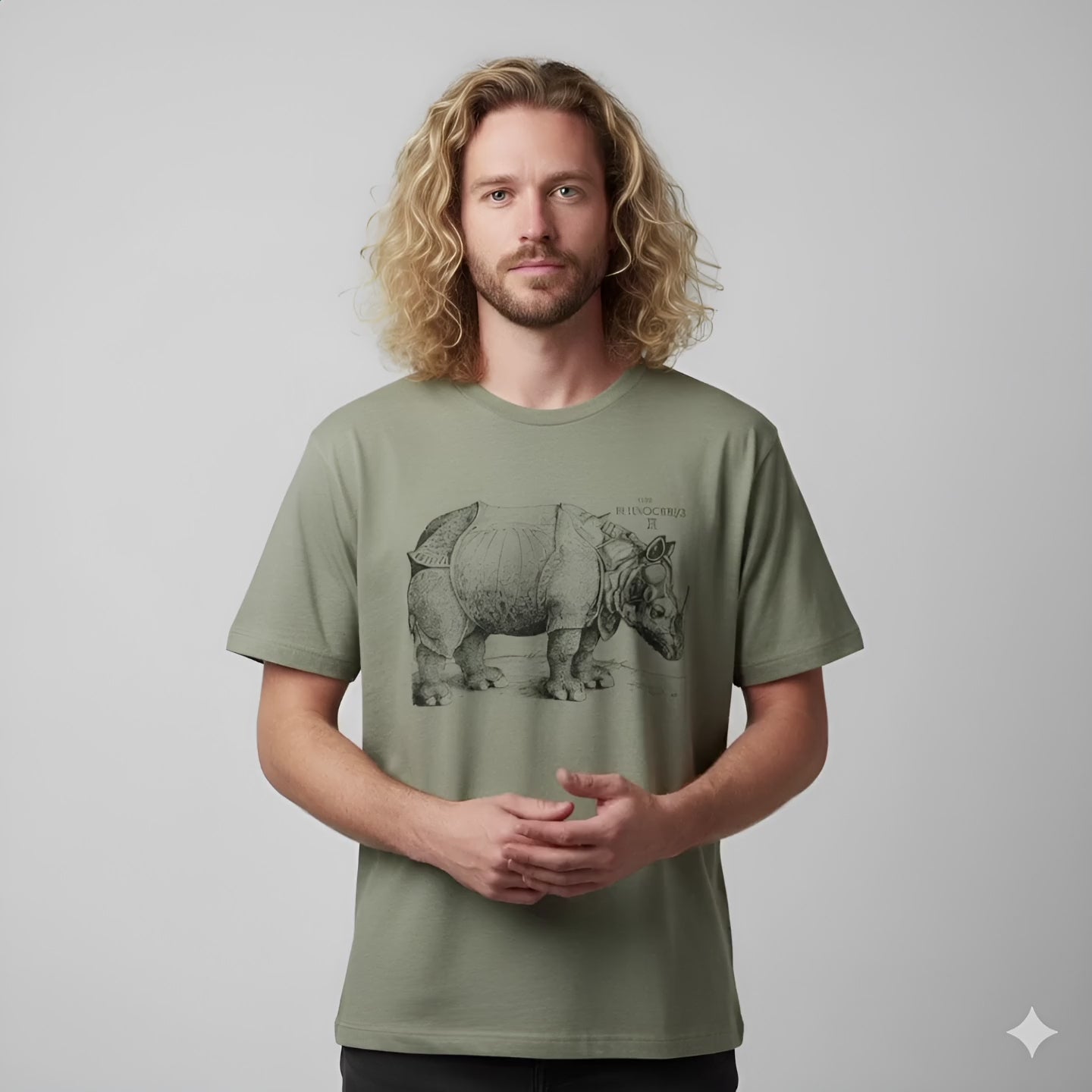Celebrate one of history’s most iconic works of art with the Albrecht Dürer Rhino Shirt — a vintage-inspired graphic tee that combines timeless artistry with modern comfort. Featuring Dürer’s legendary 1515 woodcut illustration “The Rhinoceros,” this shirt captures the spirit of the Renaissance in wearable form.