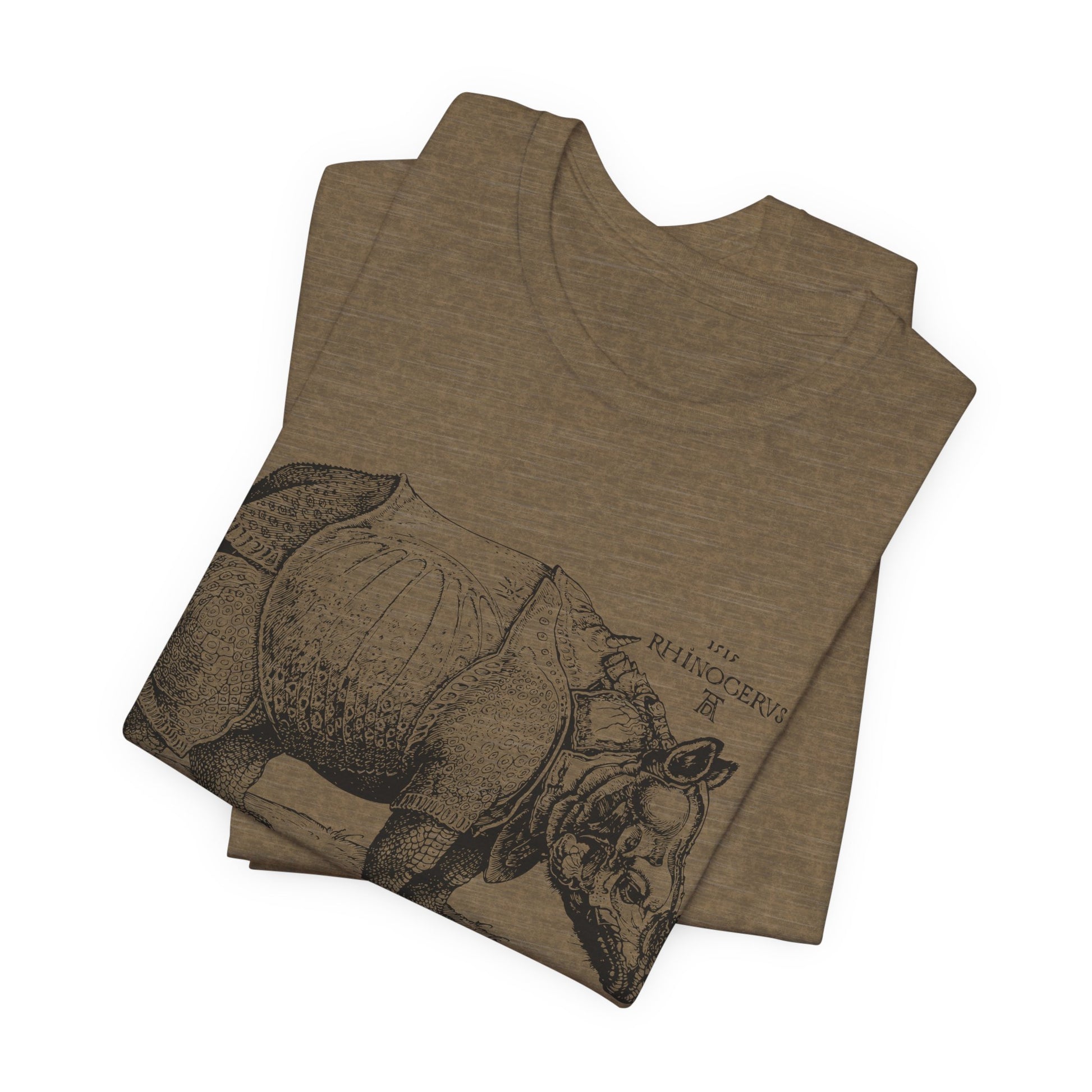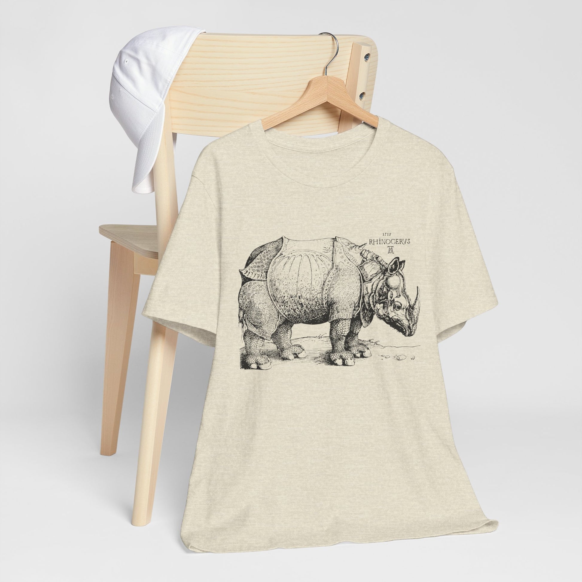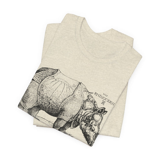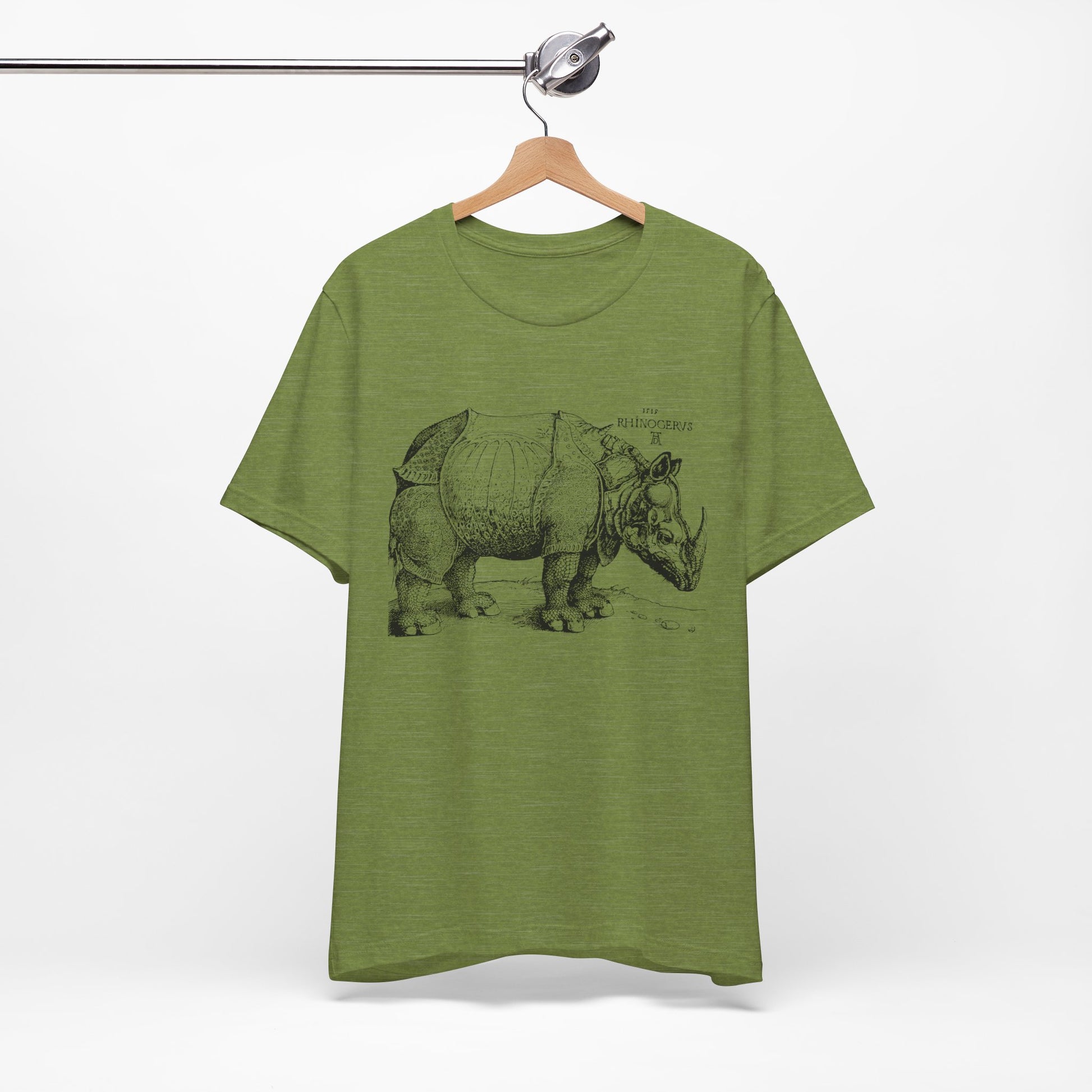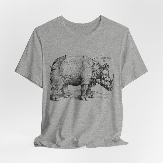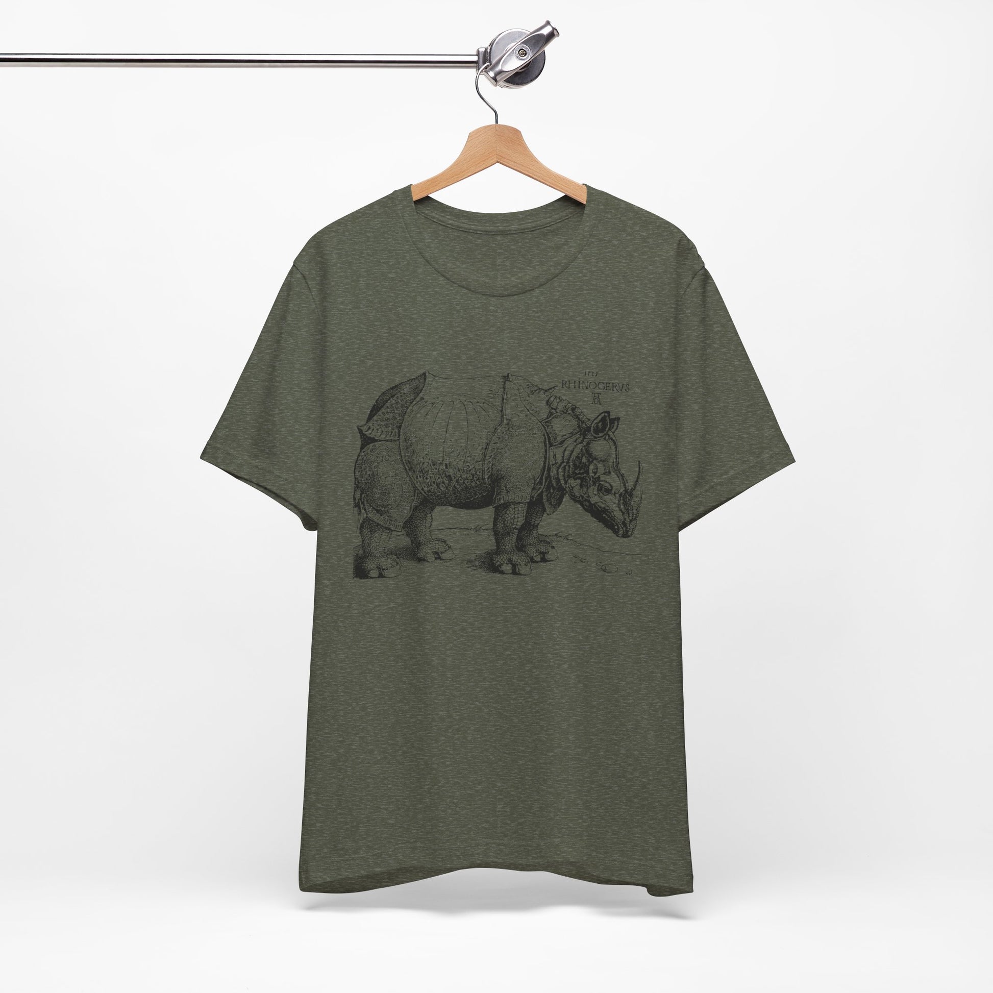 Celebrate one of history’s most iconic works of art with the Albrecht Dürer Rhino Shirt — a vintage-inspired graphic tee that combines timeless artistry with modern comfort. Featuring Dürer’s legendary 1515 woodcut illustration “The Rhinoceros,” this shirt captures the spirit of the Renaissance in wearable form.