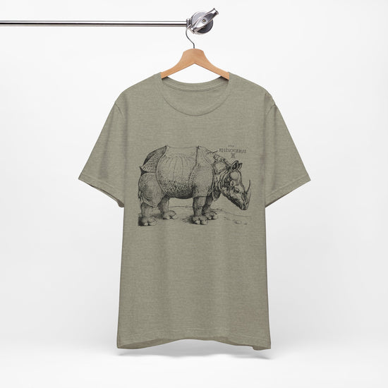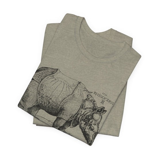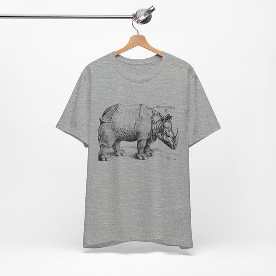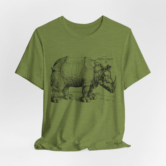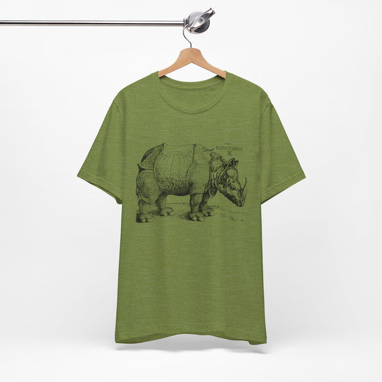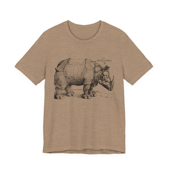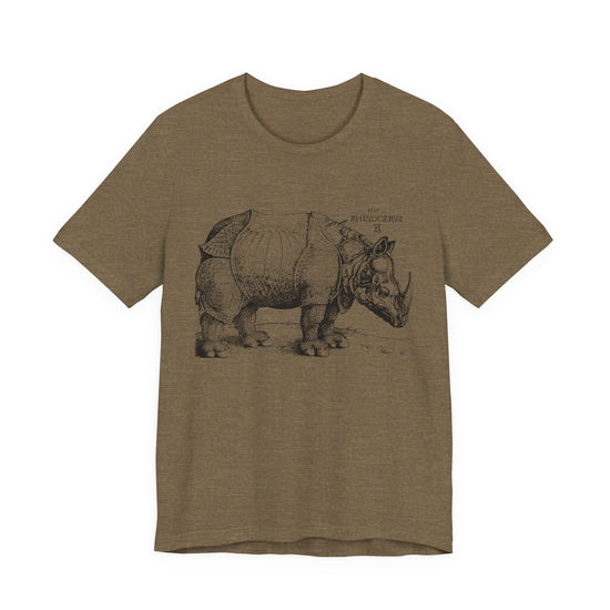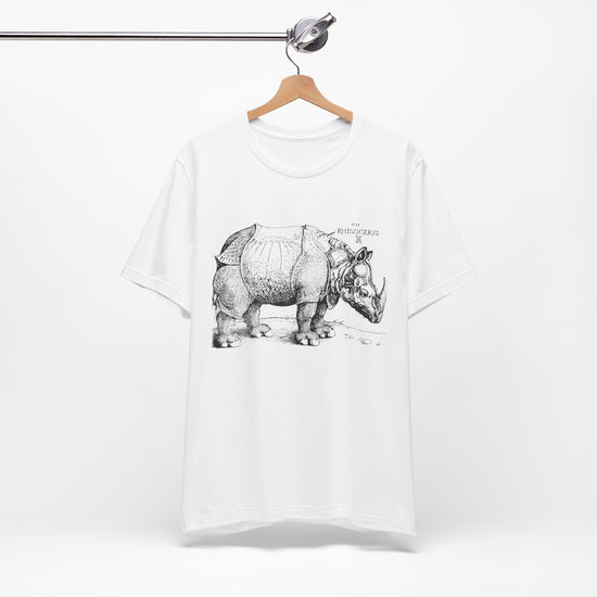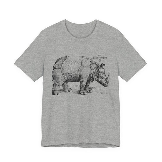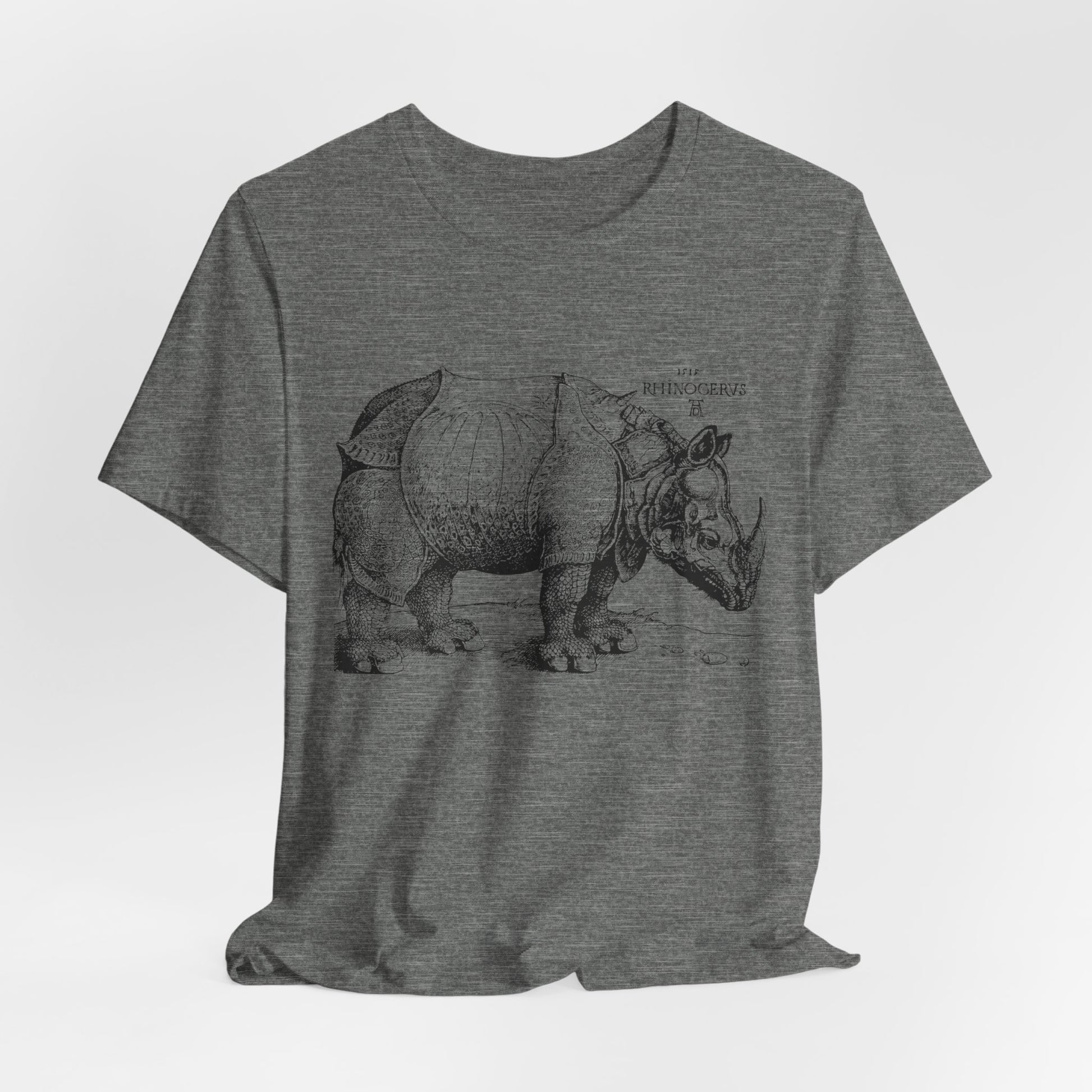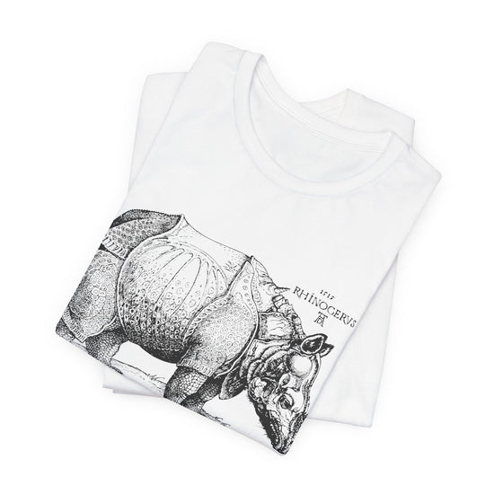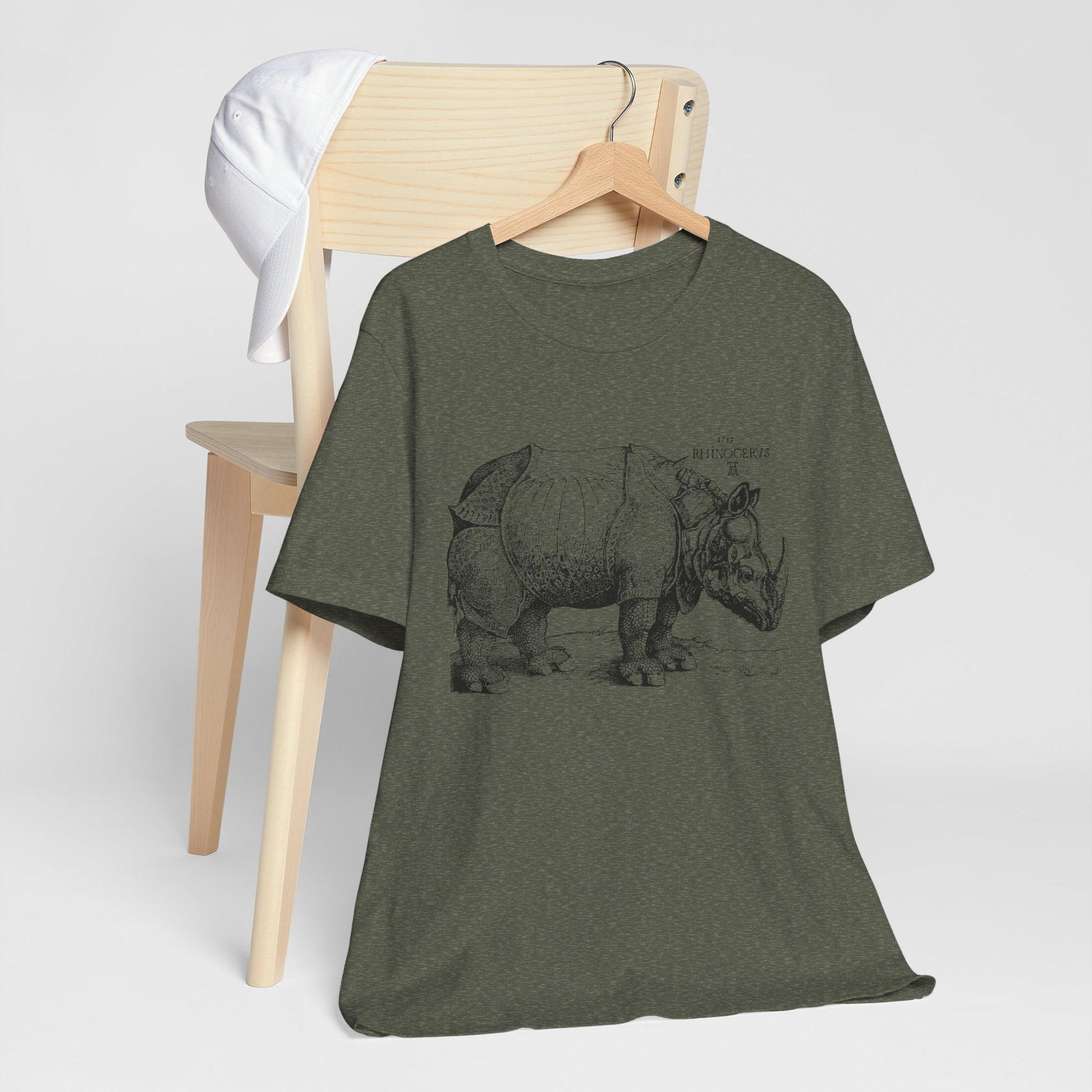 Celebrate one of history’s most iconic works of art with the Albrecht Dürer Rhino Shirt — a vintage-inspired graphic tee that combines timeless artistry with modern comfort. Featuring Dürer’s legendary 1515 woodcut illustration “The Rhinoceros,” this shirt captures the spirit of the Renaissance in wearable form.