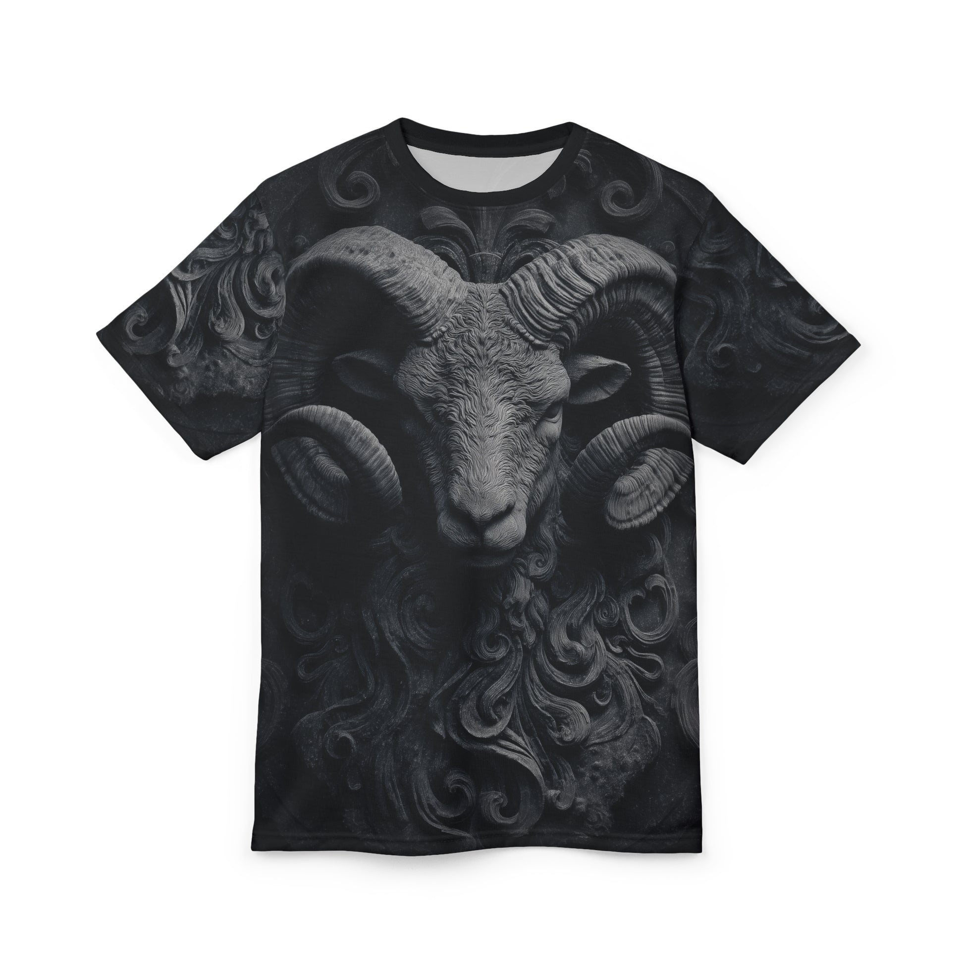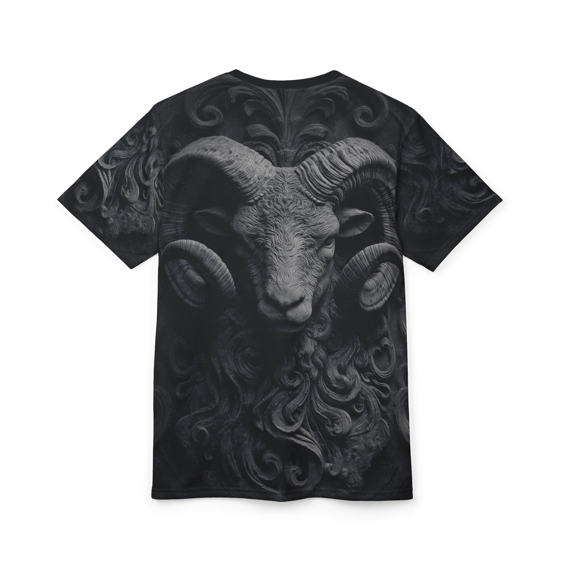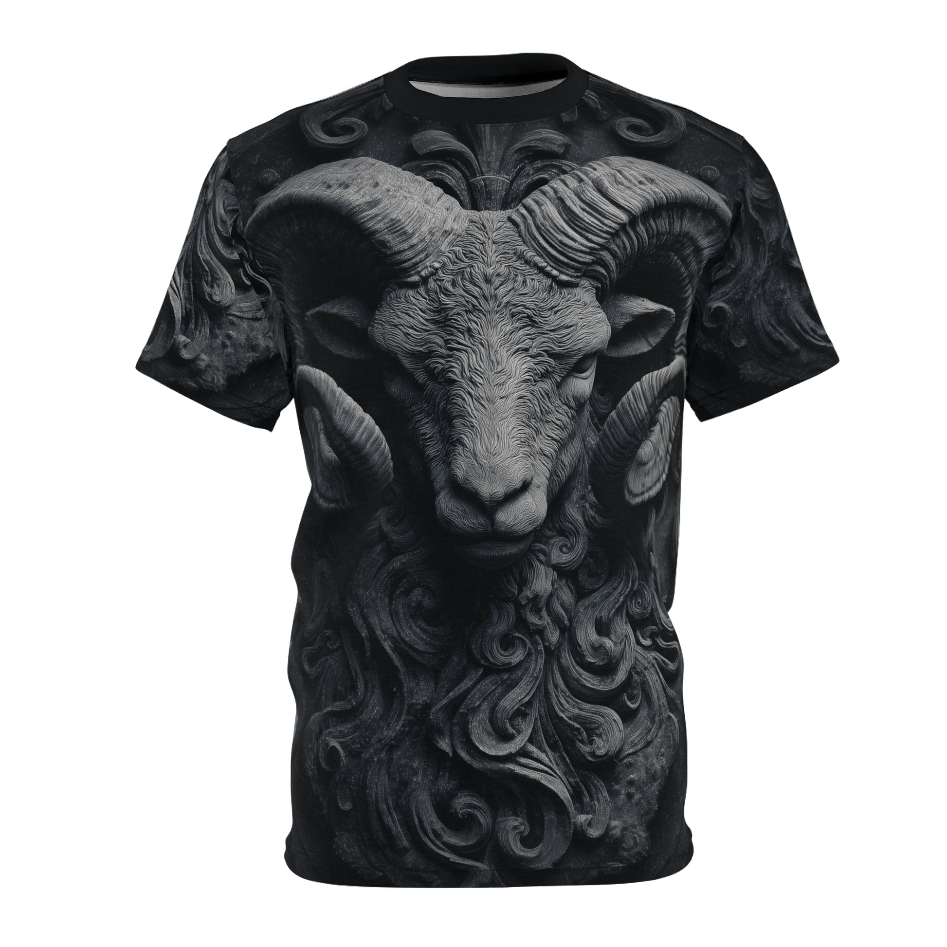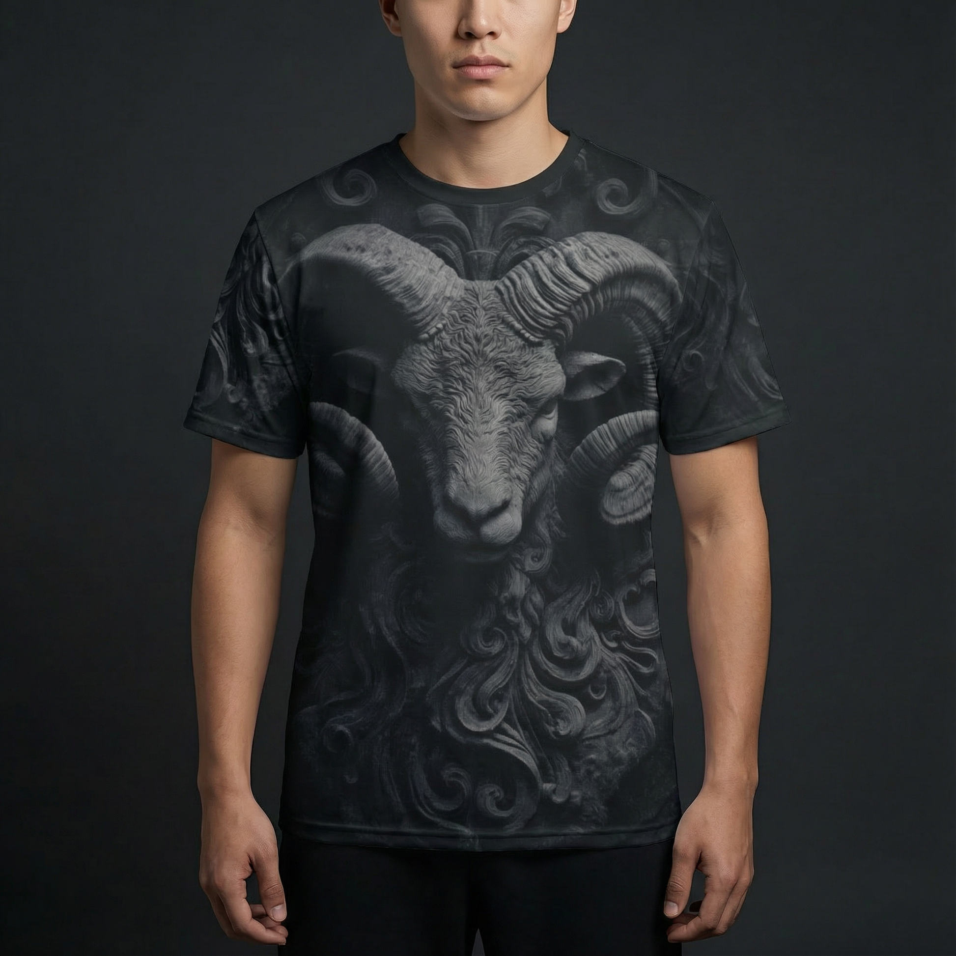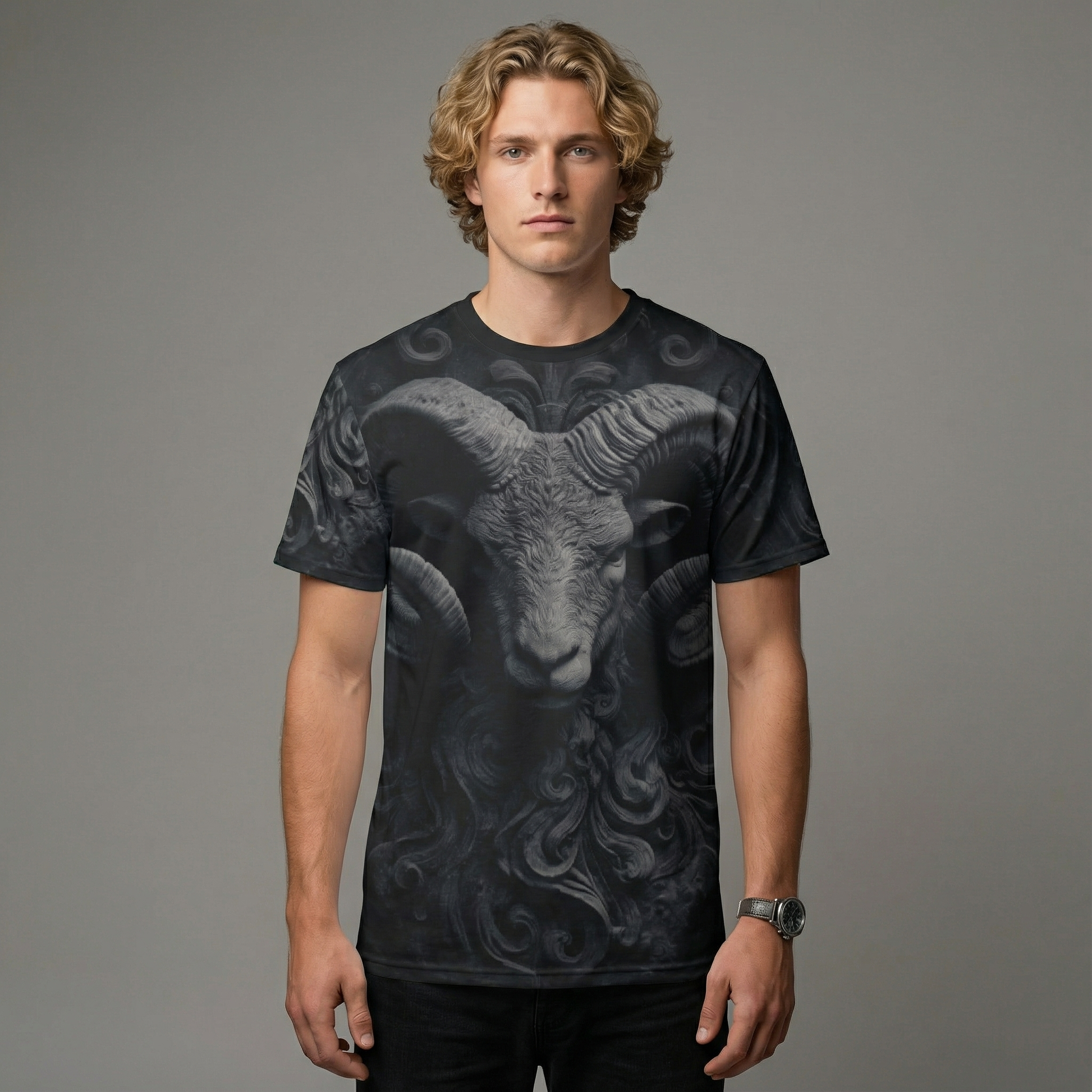 Wear the wild logic of the stars. This tee carries a surreal Aries ram — bold horns curling like a midnight constellation, a face caught between dream and fire. It settles into your wardrobe the way a story settles into memory: immediate, a little fierce, quietly confident. Slip it on for a night of stargazing, a local art crawl, or the slow ritual of morning coffee before a big day. The cut-and-sew construction keeps the print uninterrupted across seams, letting the ram’s gaze read like a single, unbroken thought. Breathable and quick-drying polyester keeps the colors sharp and alive, so the design keeps surprising you as it softens with wear. For people who move with intention and like their style to carry a hint of myth, this tee feels like the voice that says, go first.