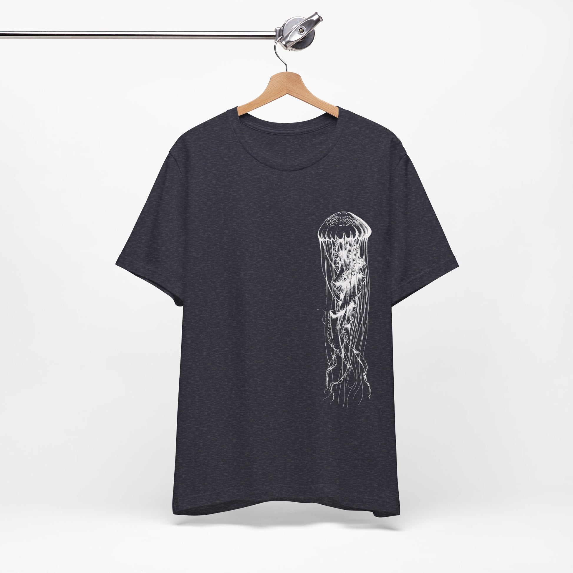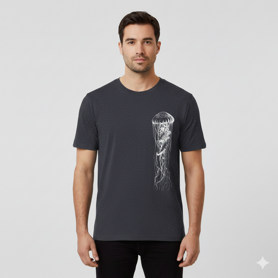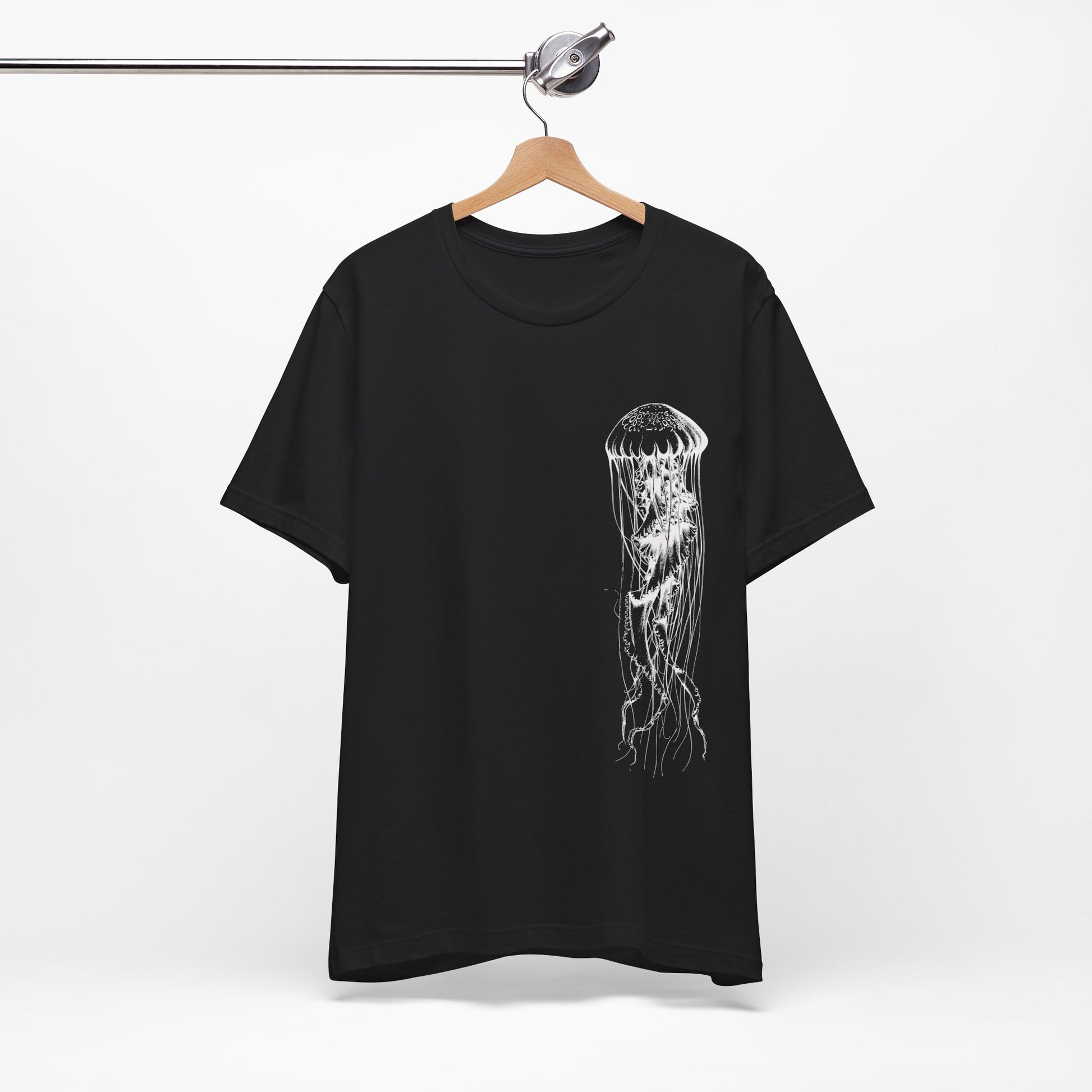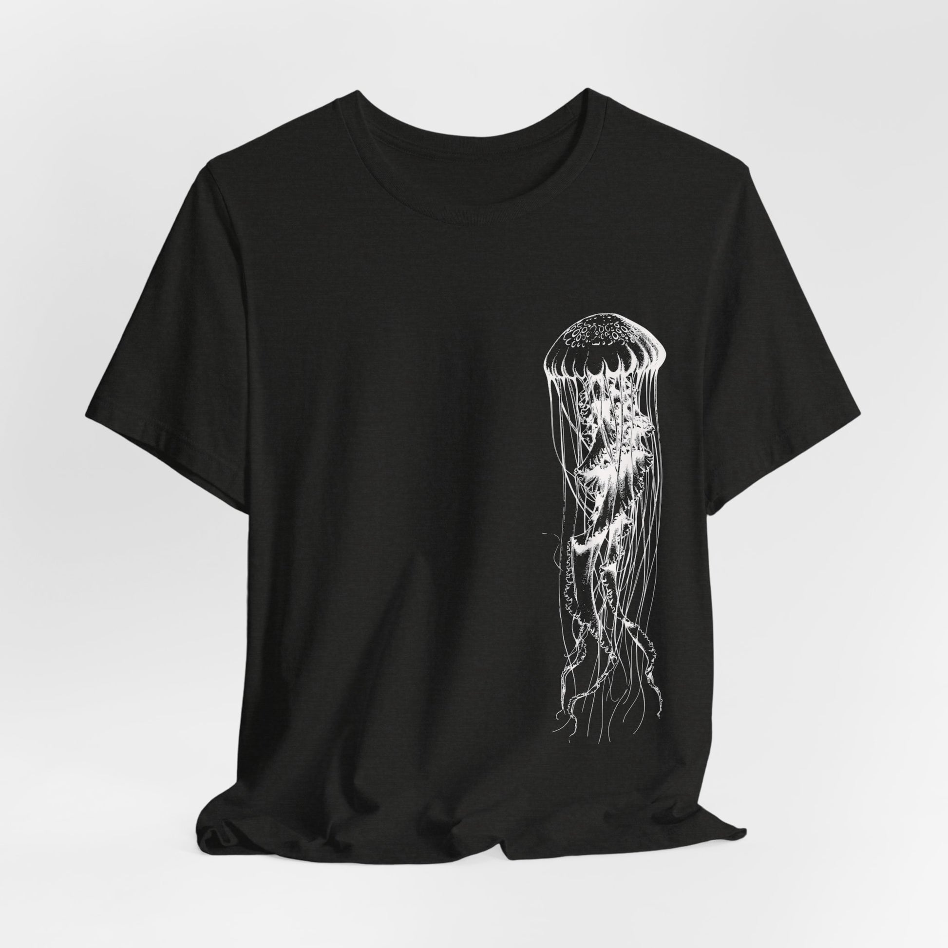 Dive into style with the Jellyfish Graphic Shirt — a minimalist ocean-inspired design printed on soft, breathable Bella + Canvas cotton. Featuring an elegant white jellyfish illustration against a dark cotton tee, this graphic shirt is perfect for ocean lovers, nature enthusiasts, and anyone who appreciates clean, artistic fashion.