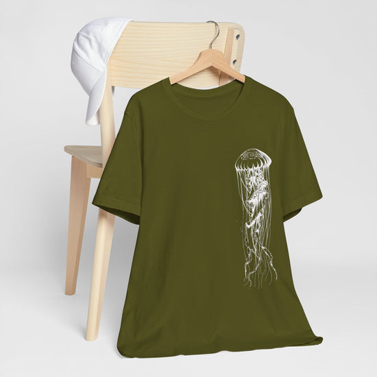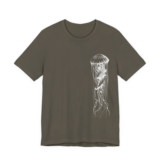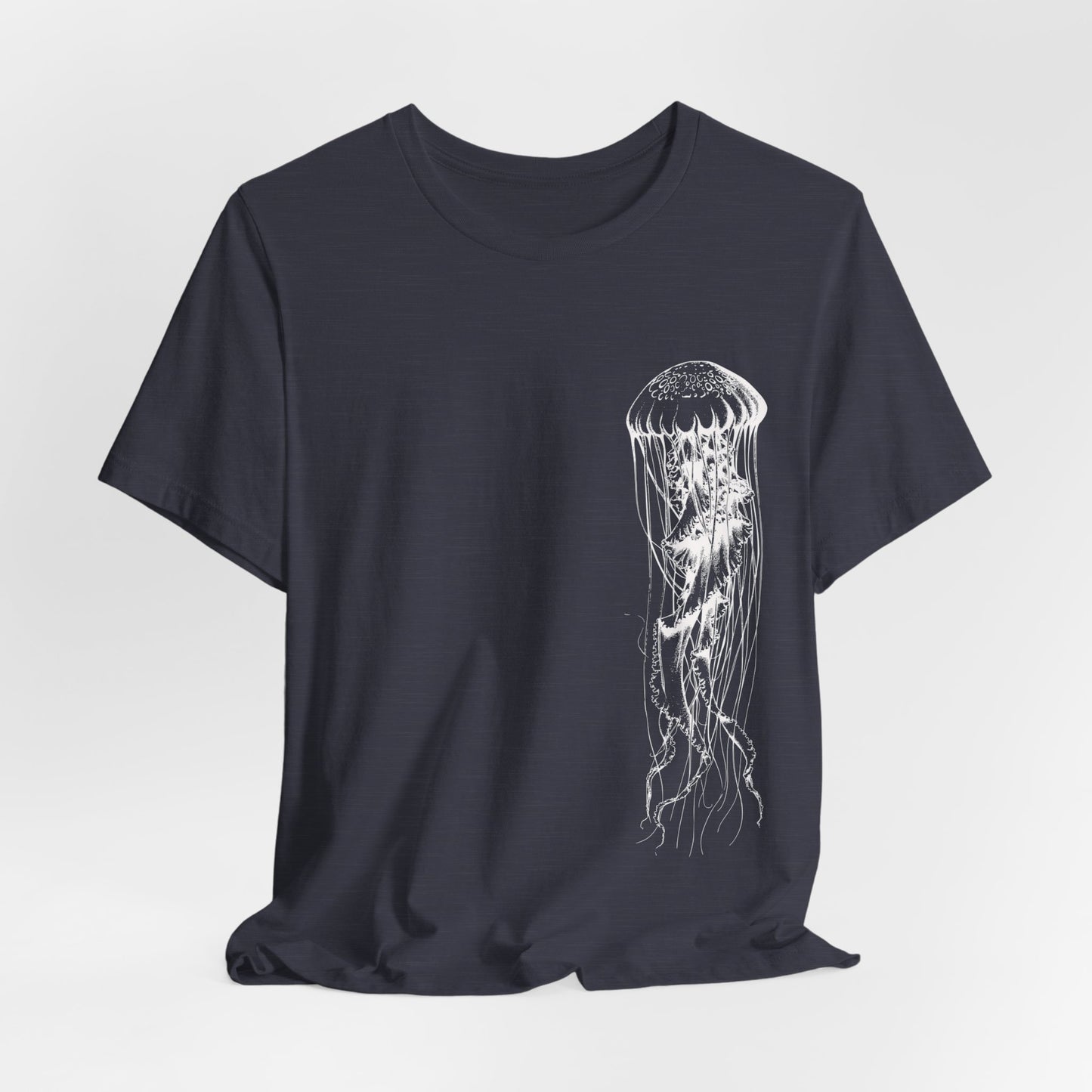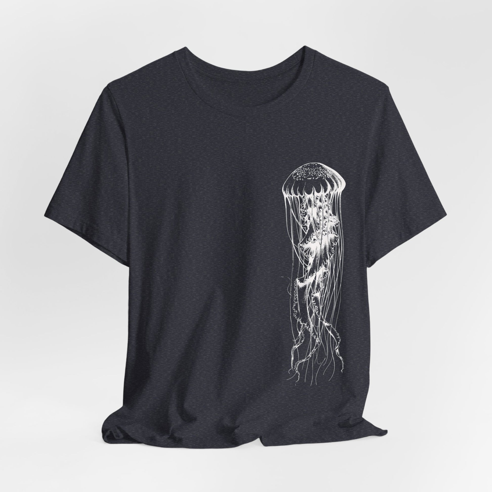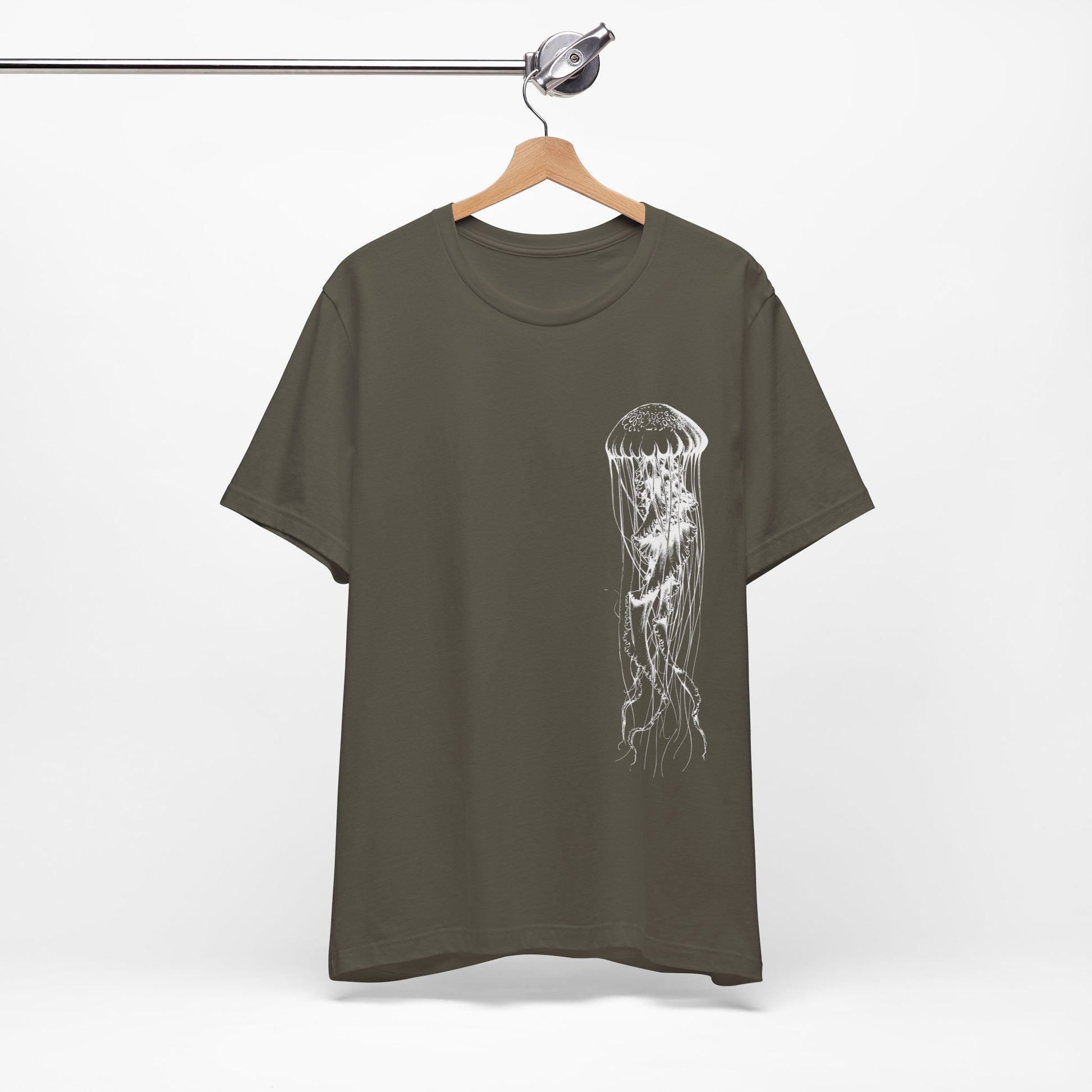 Dive into style with the Jellyfish Graphic Shirt — a minimalist ocean-inspired design printed on soft, breathable Bella + Canvas cotton. Featuring an elegant white jellyfish illustration against a dark cotton tee, this graphic shirt is perfect for ocean lovers, nature enthusiasts, and anyone who appreciates clean, artistic fashion.