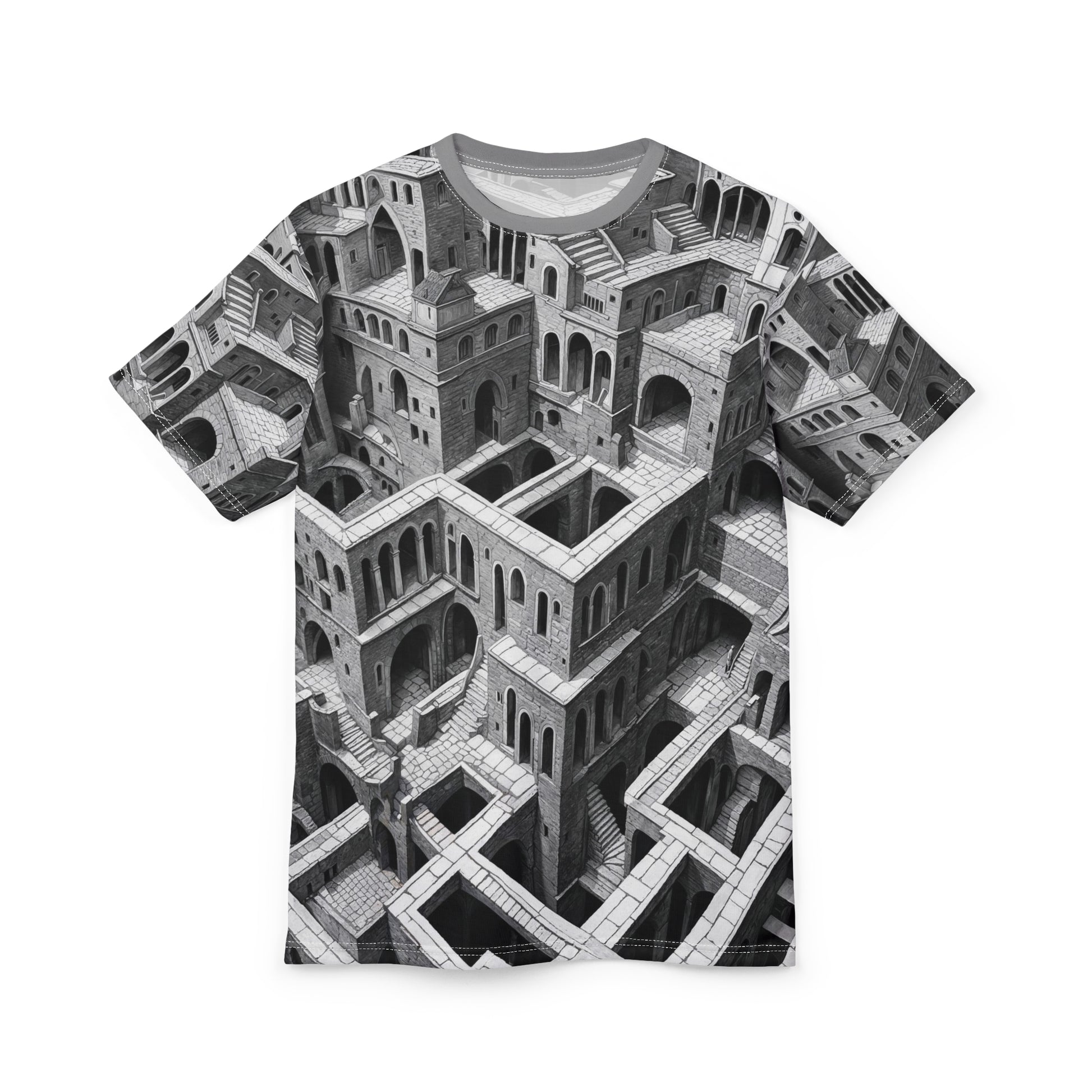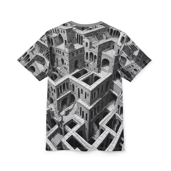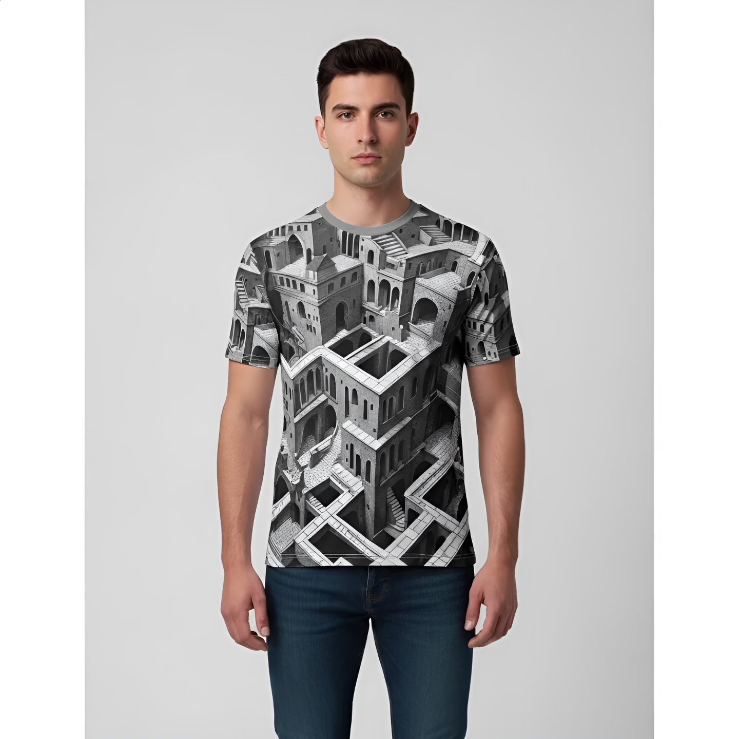 Made from lightweight 100% polyester, this all-over print graphic tee combines comfort with a high-definition design that won’t fade. Perfect for art lovers, architects, mathematicians, or anyone drawn to illusionary design, this shirt is both conversation-starting and stylish.