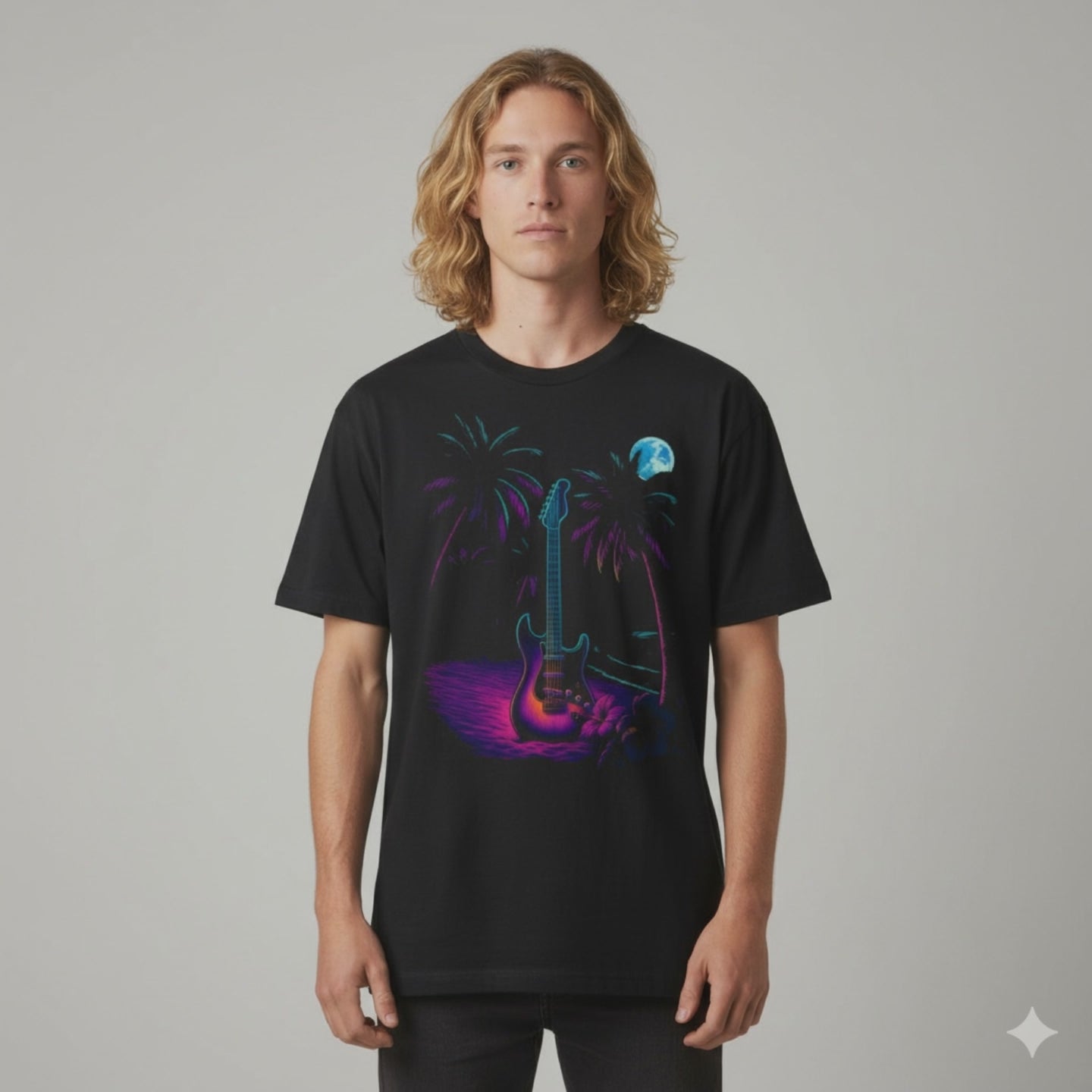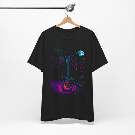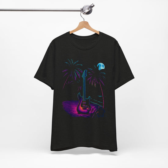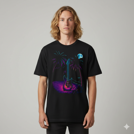 Bring beach vibes and music energy together with the Neon Guitar Beach Shirt — a retro-inspired Bella + Canvas graphic tee featuring a glowing electric guitar under moonlit palm trees. Designed for musicians, guitarists, and music lovers, this shirt captures that perfect mix of relaxation and rhythm.