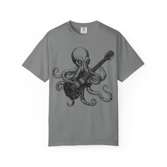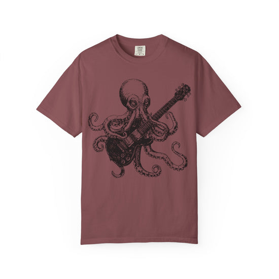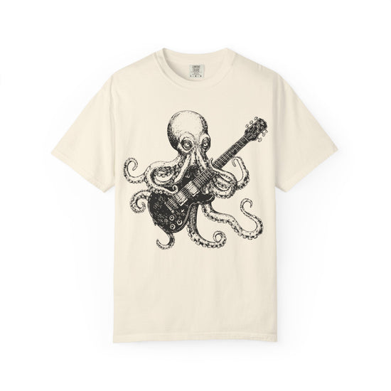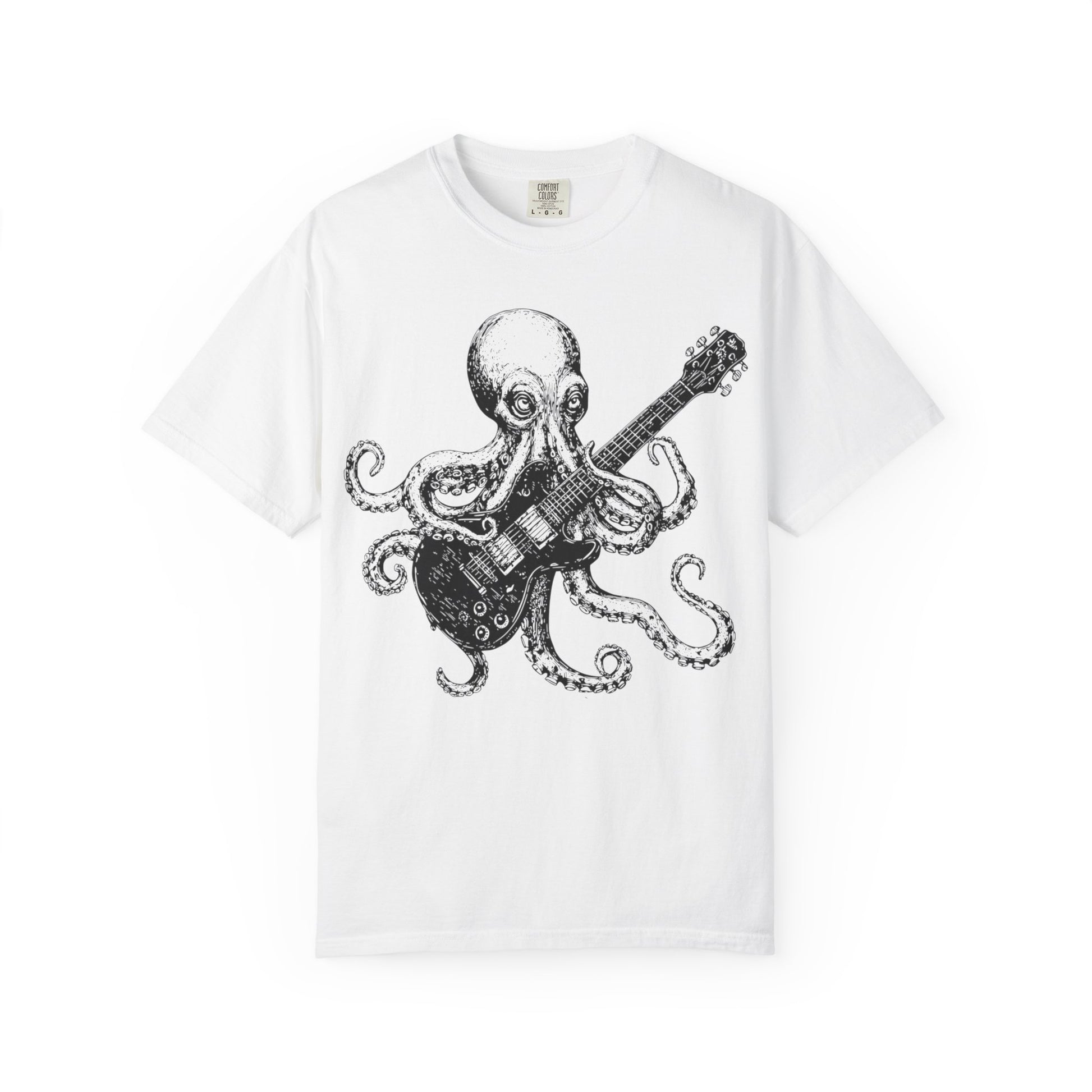 Make waves with the Octopus Guitar Shirt, a bold and playful design that fuses ocean life with rock music energy. This Comfort Colors cotton graphic tee features a detailed octopus playing an electric guitar, making it the perfect shirt for musicians, guitarists, and music lovers who want something truly unique.
